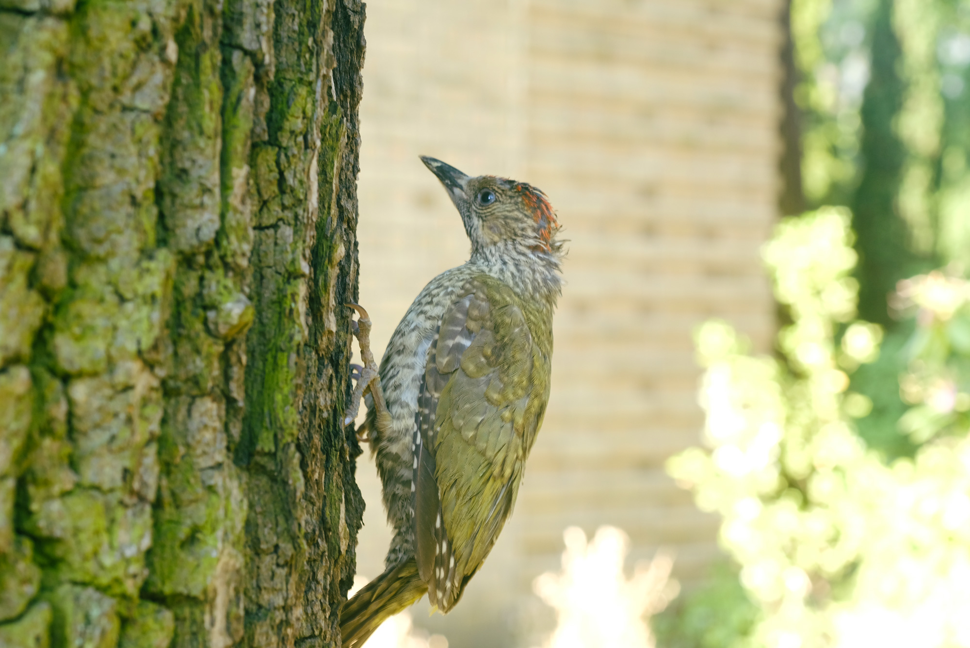 “Ich bin Pepe, der junge Grünspecht auf dem Luisenfriedhof II. In meinem Nest war es sehr bequem, aber auch langweilig, deshalb wurde ich flügge. Die ersten Tage meines Lebens sind stressig und gefährlich, weil andauernd Krähen hinter mir her sind. Diese Woche war es besonders schlimm, und meine Eltern und ich riefen um Hilfe. Ein Menschenwesen entdeckte mich im Gras, meine Kopfhaut blutig, mein schönes rotes Haupthaar zur Hälfte weg. Ein zweites Menschenwesen brachte einen Korb, in den ich mich setzen sollte. Ich wollte nicht sterben, also blieb mir keine andere Wahl. Zu Mama und Papa sagte ich, dass sie sich keine Sorgen machen sollen. Ich bin bald zurück.“